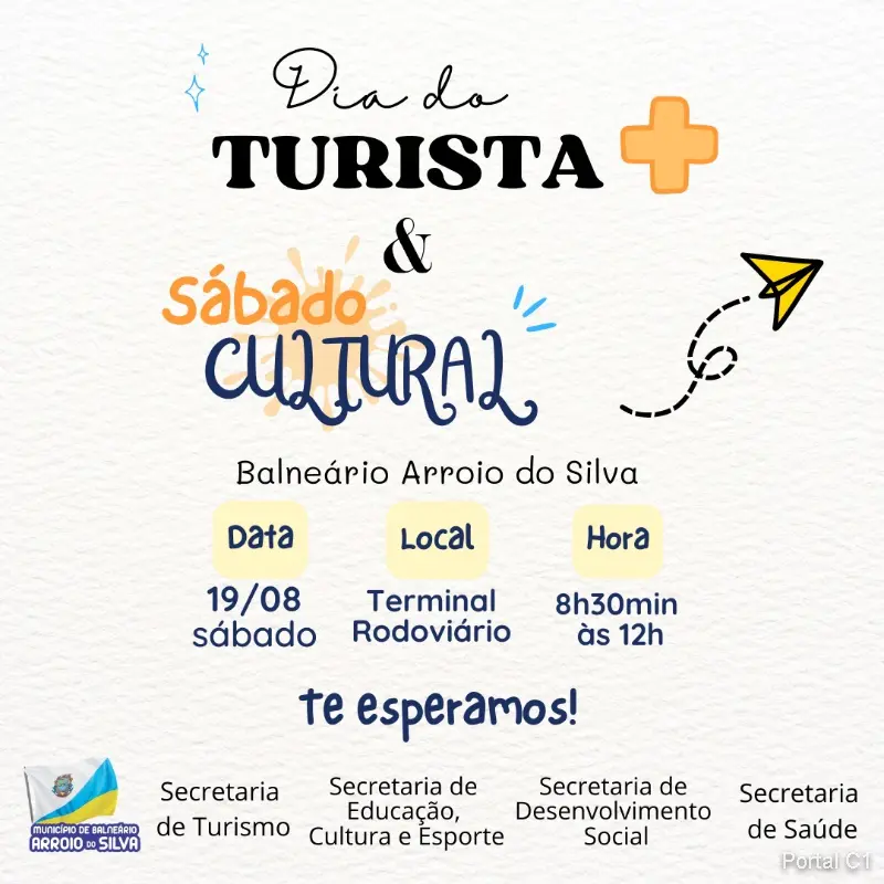 Para proporcionar atividades recreativas, culturais e valorizar o turismo local, no sábado (19), das 8h30min às 12h, ocorre a segunda edição do Dia do Turista + & Sábado Cultural, no Terminal Rodoviário de Balneário Arroio do Silva, promovida pela Prefeitura.