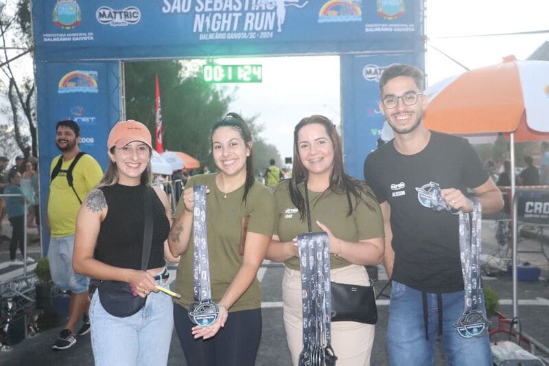 São Pedro deu uma força para que a tradicional corrida de São Sebastião Night Run ocorresse com tempo bom, depois de um dia chuvoso em Balneário Gaivota. A 19ª edição da São Sebastião Night Rum Ficou marcada pela participação de 270 atletas, com percursos para Kids, 5 KM e 10 KM. A largada e chegada foi no bairro Village Dunas e contou com a presença do Prefeito Kekinha, Vice Jonatã, empresário Ramon Costa Milan e Vitor da Mattric, que promoveram o evento, com apoio da Prefeitura Municipal. Ao final da corrida os atletas recebiam frutas, suco, chopp e foram agraciados com show de Coruja e banda