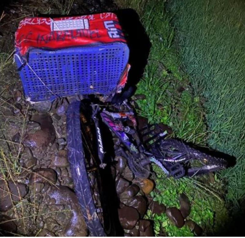 Pela posição em que se encontrava a bicicleta e as marcas de frenagem, foi possível verificar que o acidente ocorreu no sentido Jacinto Machado/Turvo, sendo a bicicleta atingida e arrastada por cerca de 30 metros.