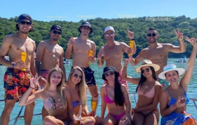 Rodrigo Dourado, Heitor e Nonato aproveitaram a folga do final de semana no Inter e viajaram a Santa Catarina. O trio se reuniu com mais pessoas, todas sem máscara, em um barco para curtir uma das praias do estado vizinho ao Rio Grande do Sul.