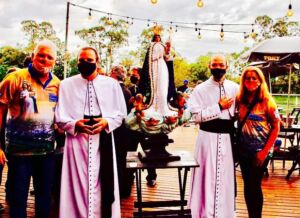 Padroeira Nossa Senhora Mãe dos Homens com os padres Marcos e Maxssuel, e os festeiros Celso e Alba. Hoje solene coroação e amanhã convidam para a Procissão Motorizada, 16 horas. 173* Romaria e Festa!