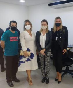 Dione Cesa, primeira dama de Araranguá com Júlia Zanatta Coordenadora da Embratur em visita técnica. Na moldura com Antenor da Silva (Turismo) e Helen Becker, coordenadora Turismo AMESC.