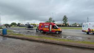 Os Bombeiros acionaram o SAER Sarasul que chegou no local para fazer o transporte da vítima, de aproximadamente 40 anos, ainda sem identificação, porém a mesma acabou não resistindo e vindo a óbito no local.
