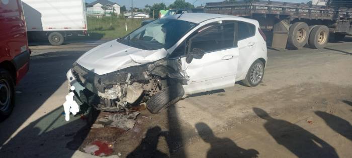 A vítima condutora do veículo (Fiesta), encontrava-se sentada em uma cadeira as margens da rodovia, consciente e orientada. A mesma apresentava escoriações no antebraço e no joelho esquerdo, durante o deslocamento a também relatou dor na coluna lombar. O condutor do caminhão 1620, não sofreu ferimentos.