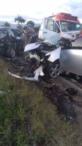 Os dois automóveis colidiram de frente, por volta das 18 horas deste sábado, dia 18.