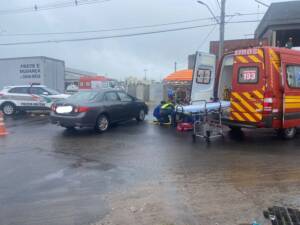 No começo da tarde desta terça-feira (05), por volta das 14h, na Avenida Papa João XXIII, no bairro Parque das Avenidas, em Sombrio, ocorreu uma colisão entre um motociclista que transportava água para a venda e um carro de modelo Toyota Corolla cinza.