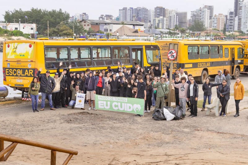 A Prefeitura de Passo de Torres, por meio da Secretaria de Meio Ambiente e Planejamento, realizou na segunda-feira (2) uma ação de limpeza e recolhimento de resíduos sólidos na área de restinga e na Praia dos Molhes. A iniciativa contou com a participação de cerca de 100 alunos do 1º ano da Escola de Ensino Médio Governador Ildo Meneghetti, além da equipe do ICMBio – REVIS Ilha dos Lobos.