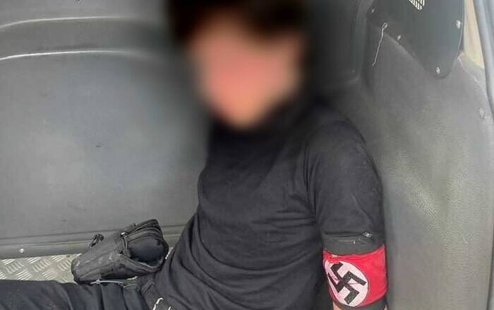 O rapaz estava armado com uma machadinha e tinha uma suástica, símbolo nazista, em um dos braços.