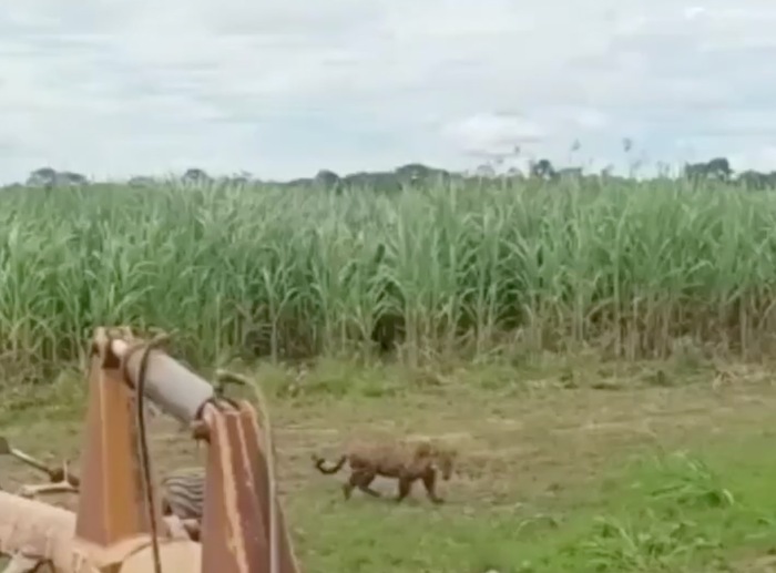 Um tratorista ficou cara a cara com onça-pintada enquanto trabalhava em uma fazenda. O caso aconteceu no Mato Grosso e foi filmado pelo próprio agricultor.