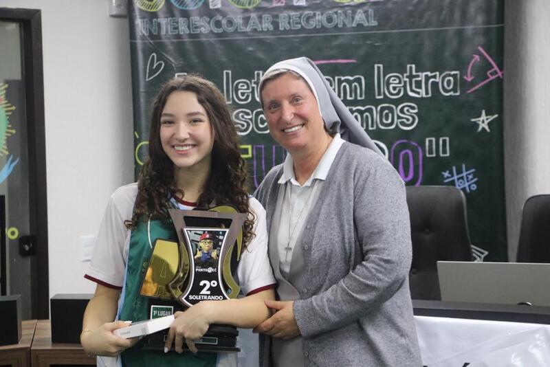 O segundo lugar do Soletrando Ensino Médio ficou para Giovanna Silveira, aluna do 2º ano, do IFC de Sombrio. Já a grande campeã, que conquistou o primeiro lugar do Soletrando Ensino Médio, foi a aluna do 1º ano do Colégio Iemes de Sombrio, Isadora M. Pereira (foto).