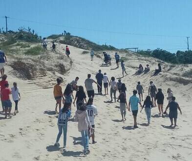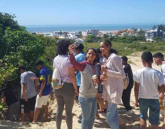 Já a confraternização entre os adolescentes foi com um passeio. Os jovens participaram de uma trilha no Morro dos Conventos acompanhados pelo Chefe dos Escoteiros do Grupo Ariringuá, Tião, pela coordenadora do CRAS, Liege, e pelos professores das oficinas.