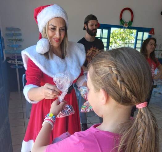 A confraternização contou ainda com uma visita mais do que especial: a Mamãe Noel que distribuiu balas, abraços e muito carinho entre a turma.