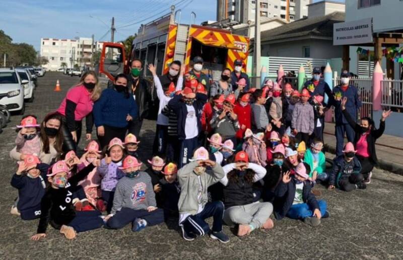 Para comemorar o Dia Nacional do Bombeiro Militar, celebrado no dia 2 de julho, bombeiros do Batalhão de Araranguá estiveram na escola, mostrando um pouco do seu cotidiano para os pequenos. Os profissionais mostraram o equipamento de combate a incêndio, roupas para manejo de insetos, o caminhão e ambulância de atendimento ao público, respondendo a perguntas e explicando os protocolos do trabalho junto à comunidade.