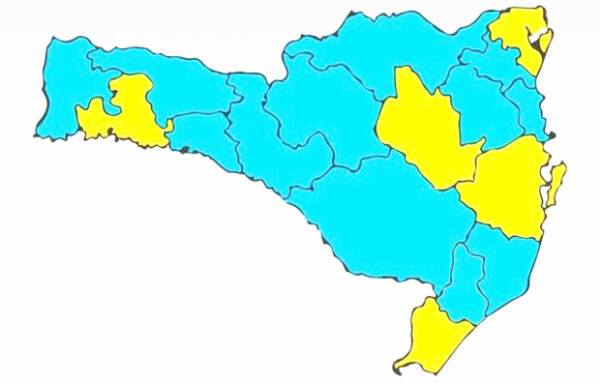 Por outro lado, houve uma piora nos indicadores das regiões do Alto Vale do Itajaí, a partir da elevação no número de óbitos e detecção de casos novos, na região da Grande Florianópolis, a partir da elevação da taxa de infectividade (casos ativos), detecção de casos novos e ocupação de leitos de UTI Adulto, e na região Oeste, a partir da elevação na detecção de casos novos e ocupação de leitos de UTI Adulto. Com isso, estas regiões, que na semana anterior estavam classificadas como moderado (azul), passaram a ser classificadas como nível alto (amarelo), juntamente com as regiões Extremo Sul e Nordeste, que permaneceram no nível alto.
