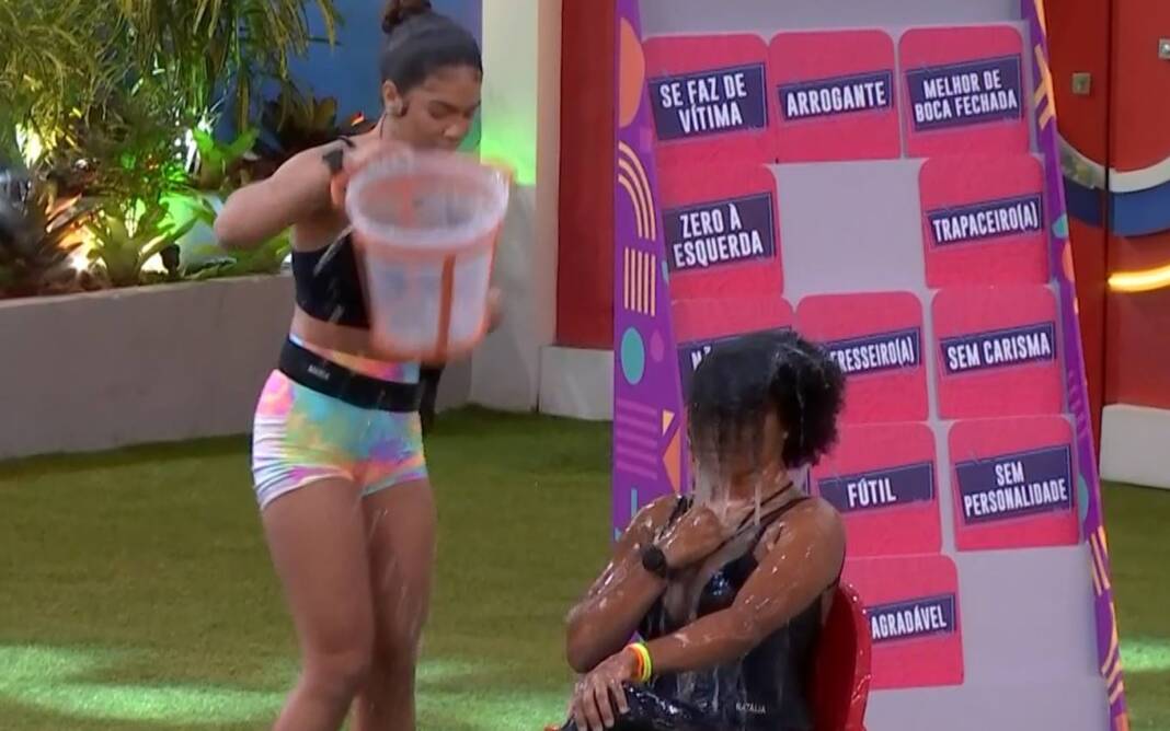 Maria acaba de ser expulsa do “BBB 22” (TV Globo) por agredir Natália durante o jogo da discórdia de ontem. Na ocasião, a atriz jogou um balde de água suja na designer de unhas e atingiu a cabeça da sister com o objeto. A direção do programa expulsou a sister hoje pela manhã. A produção chamou Maria ao confessionário pouco antes das 13h e, em seguida, fez um comunicado a todos confirmando que a conduta da atriz durante o jogo da discórdia foi considerada agressão.