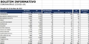 O boletim de monitoramento do novo coronavírus da Amesc desta quarta-feira, dia 19, aponta que na região 26.040 pessoas já foram contaminadas pelo vírus desde o início da pandemia, 516 não resistiram e foram a óbito.