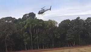Logo depois, os criminosos fugiram por uma região de mata que tem nas proximidades. A Polícia Militar, junto com o helicóptero os cães da polícia, fazem as buscas por esses assaltantes.