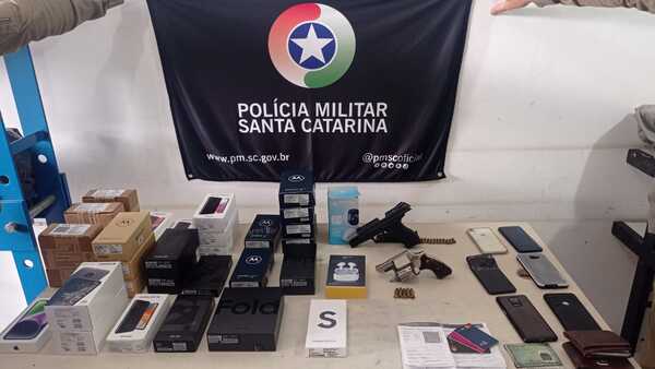Já em Passo de Torres, com as informações da PM de Garopaba e PRF, foi abordado outro veículo. Dentro dele mais envolvidos no roubo, junto com uma pistola calibre .380 e 30 celulares. Ao todo, cinco envolvidos foram presos e cerca de R$ 65 mil em produtos foram recuperados.