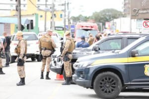 Um policial militar foi atendido pelos bombeiros após ser atingido por estilhaços, e foi liberado no local com ferimentos leves. Socorro aeromédico foi acionado no local.
