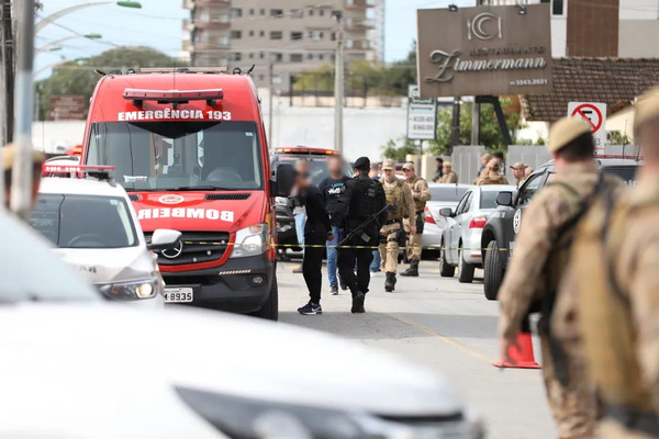 Um assalto a banco em Biguaçu, na Grande Florianópolis, fez reféns no início da tarde desta sexta-feira (11). Houve troca de tiros e um assaltante morreu, segundo a Polícia Civil. Três homens foram presos.