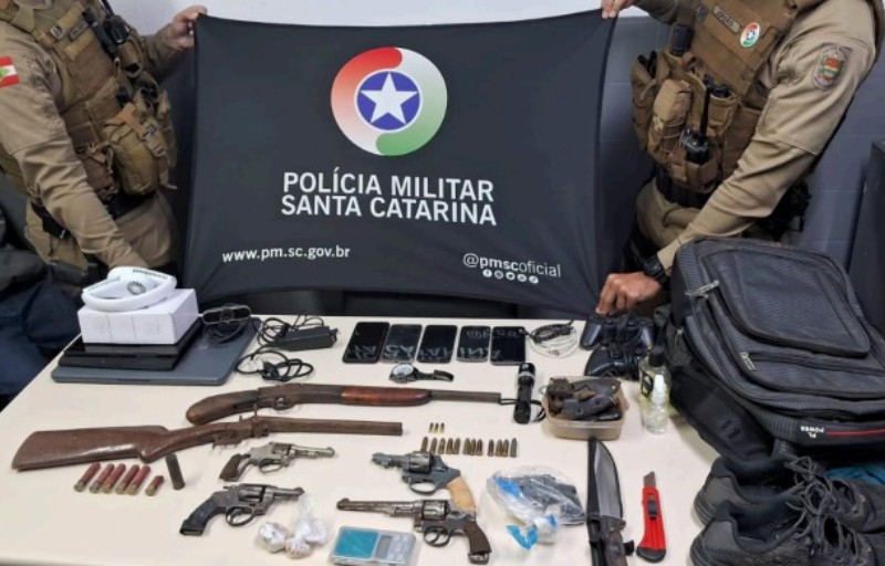 Na noite desta quarta-feira (21), às 18h55, uma ação criminosa terminou em flagrante no bairro Jardim das Paineiras, em Criciúma. Um homem armado com um revólver calibre .22 invadiu uma residência, rendeu os moradores e os trancou em um cômodo. Foram roubados diversos objetos, incluindo notebook, tablet, TV, sete celulares, roupas e um veículo VW/Polo Sedan.