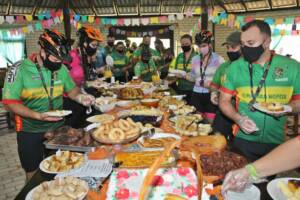 O espaço administrado pela Associação Cantinho da Amizade recebeu decoração especial para receber os participantes do I Pedala Maraka. O café colonial oferecido aos mais de 100 ciclistas foi produzido pelas mães que integram a associação.