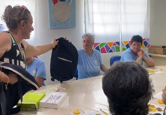 Além disso, o Ateliê de Costura também aproveitou o material em estoque para confeccionar mochilas destinadas aos moradores de rua. Essas 25 mochilas foram entregues no Centro de Referência de Assistência Social (CRAS), órgão responsável por atender pessoas em situação de vulnerabilidade. O município, por estar próximo à BR-101, recebe andarilhos, e o CRAS colabora fornecendo agasalhos, cobertores, materiais de higiene e agora, com mochilas, que serão úteis para eles.