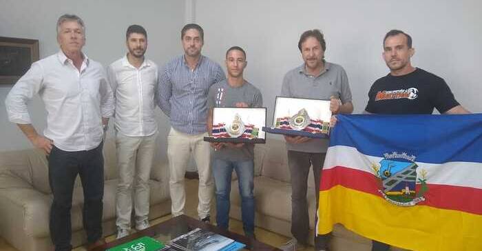 O atleta araranguaense de Muaythai, Augusto César da Silva, de 23 anos e o seu Técnico, Diego da Silva, realizaram na manhã desta quinta-feira, dia 26, uma ilustre visita ao gabinete do Prefeito Cesar Cesa, onde trouxeram uma ótima notícia ao município de Araranguá.