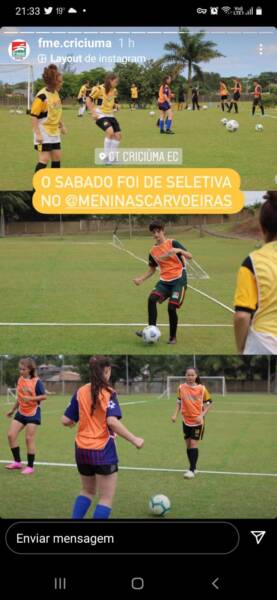 Cauane Cruz Mello, de 14 anos, foi aprovada na seletiva das Meninas Carvoeiras. A jovem atleta é um talento de Turvo no futebol. Ela foi uma das três jovens que passaram na seletiva realizada no último sábado no Centro de Treinamento Antenor Angeloni e já tem compromisso de participar de uma competição em Sorocaba/SP, no próximo mês.