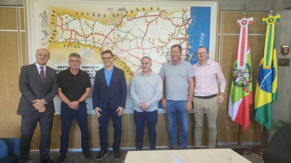 Na manhã desta quarta-feira (24) estiveram em Florianópolis o prefeito de Timbé do Sul, Roberto Biava junto do vereador Elias Makar, o prefeito de Ermo, Paulo Della Vecchia, o deputado Estadual José Milton Scheffer com o assessor André para uma reunião com o superintendente do DNIT/SC, Alysson Rodrigo de Andrade.
