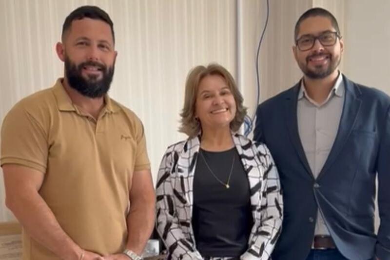 Na foto, o cardiologista aparece ao lado da secretária de Saúde, Onice Medeiros, e do diretor de Saúde, Eduardo Kruger, reforçando o compromisso conjunto de oferecer um atendimento humanizado e de excelência à comunidade.