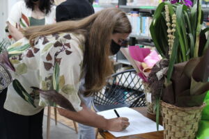 A assinatura do termo de doação foi realizada durante um encontro na própria Biblioteca. A advogada e sócia da Bianchini Góes Advocacia e Assessoria, Claudia Corrêa Góes Botelho, representou o fundador do escritório, seu pai, Helcio Bianchini Góes (advogado há 60 anos), que em função de cuidados com a saúde neste momento de pandemia, não pode estar presente. Os netos de Helcio, João Pedro Góes Botelho e Fernanda Pavei Góes, também acompanharam o momento. O advogado André Corrêa Bianchini Góes, irmão de Claudia, sócio do escritório e ex-professor do curso de Direito da Unesc, falecido em 2020, também foi lembrado durante a pequena cerimônia.