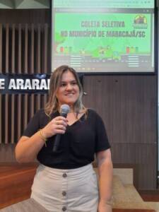 Bióloga do Centro de Triagem de Maracajá explica sobre sistema de reciclagem para vereadores de Araranguá