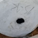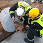 A guarnição então quebrou cuidadosamente o concreto fazendo com que a cabeça da cachorrinha fosse solta, sem ferimentos.