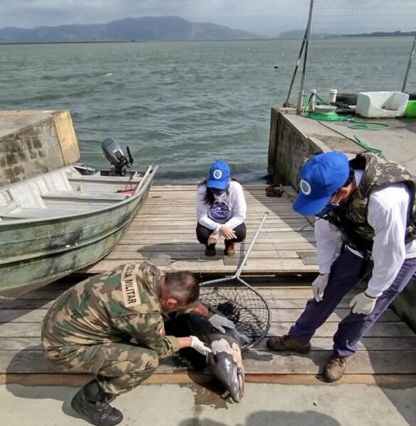O fato raro foi visto por pescadores que acionaram as equipes para fazerem o recolhimento do animal morto junto com a Polícia Militar Ambiental (PMA).