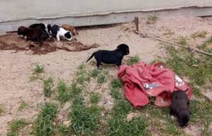De acordo com uma das voluntárias, que é protetora individual cadastrada na FAMA, em uma das visitas foi constatado que a cadela era alimentada por vizinhos e os animais ficavam na areia, inclusive em dias de chuva, sem proteção.