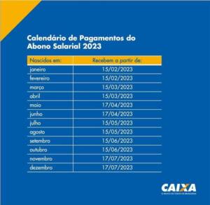 A CAIXA divulgou o calendário de pagamento do Abono Salarial referente ao ano-base 2021. A liberação dos valores é feita de acordo com o mês de nascimento dos trabalhadores e se inicia em 15 de fevereiro, para os nascidos em janeiro e fevereiro.