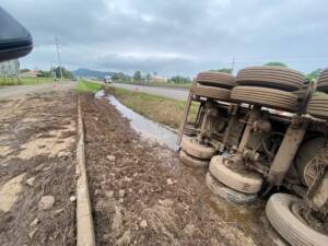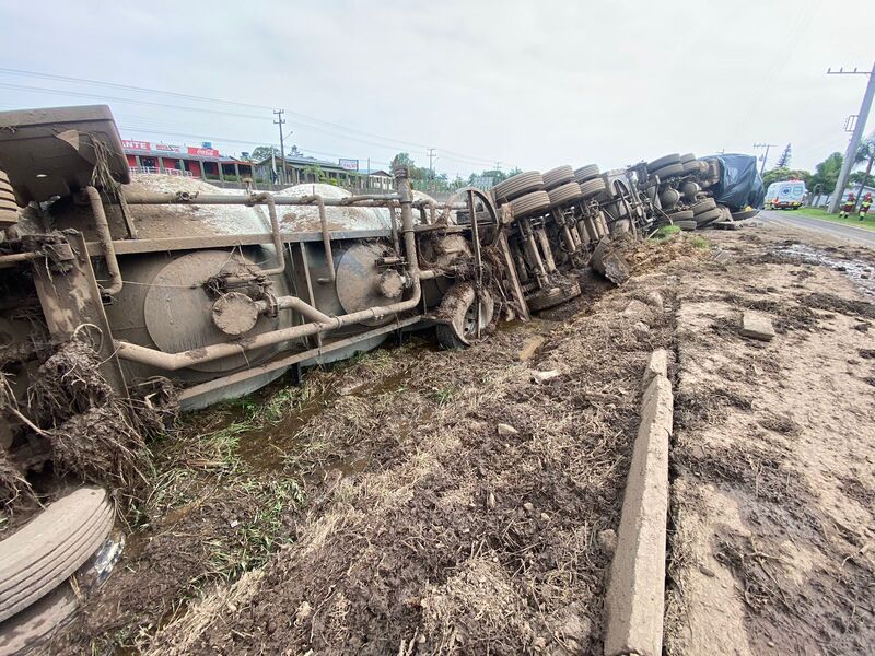 Na madrugada desta sexta-feira (01), por volta das 3h, na rodovia BR-101, em Santa Rosa do Sul sentido São João do Sul, ocorreu uma saída de pista envolvendo um caminhão de cimento.
