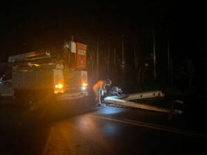 A Polícia Militar também trabalhou no local, realizando o controle do trânsito e a Celesc, assim que possível, religou a rede de energia elétrica.