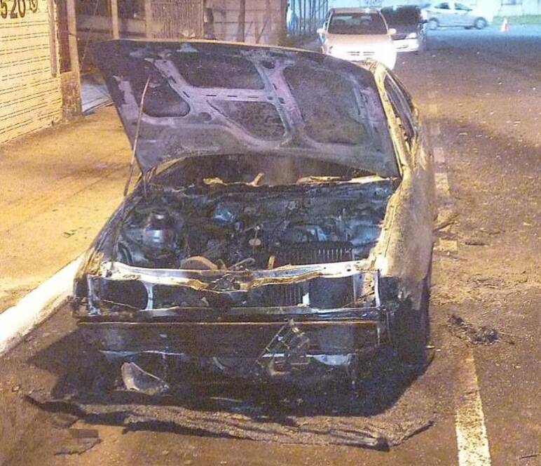 No final da tarde de ontem (15), por volta das 18h40min, na avenida Caetano Lummertz, no bairro Nova Brasília em Sombrio, um carro foi totalmente consumido pelas chamas.