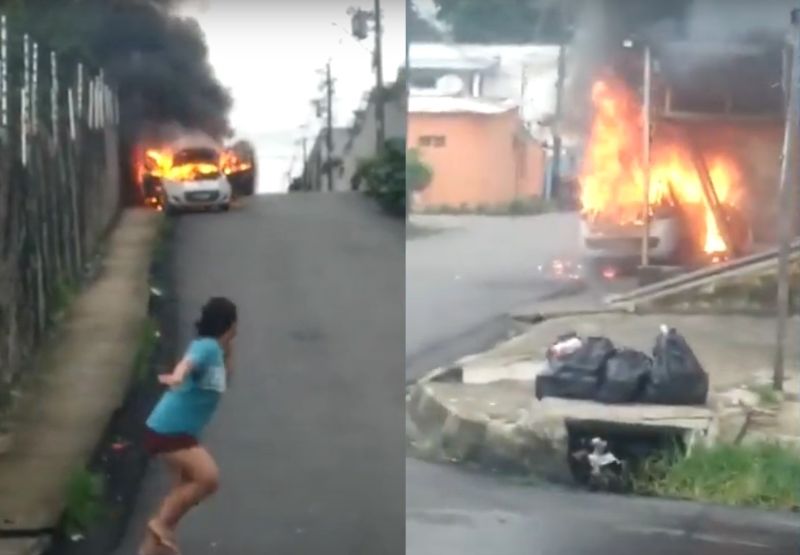 Um vídeo que circula nas redes sociais mostra o momento em que um carro, desgovernado e em chamas, desce uma ladeira e atinge um bar na Vila da Prata, zona oeste de Manaus.