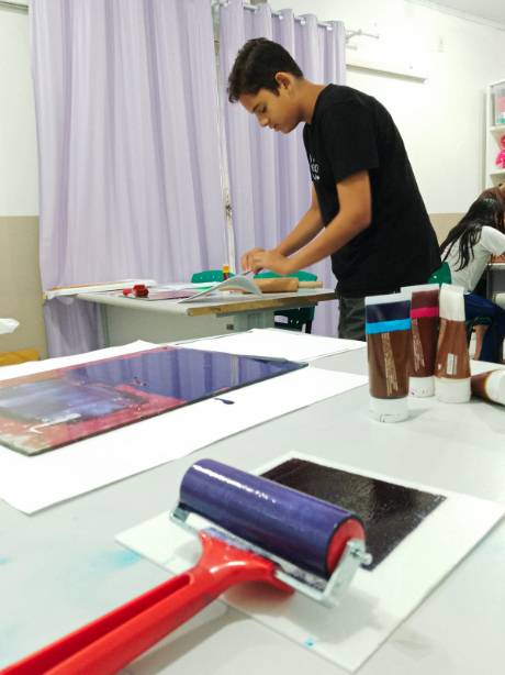 Em quatro aulas, os alunos assistidos pela instituição puderam expressar sua criatividade por meio da técnica. Depois de uma explicação sobre como funciona o processo da xilogravura, os pequenos puderam criar as próprias obras.