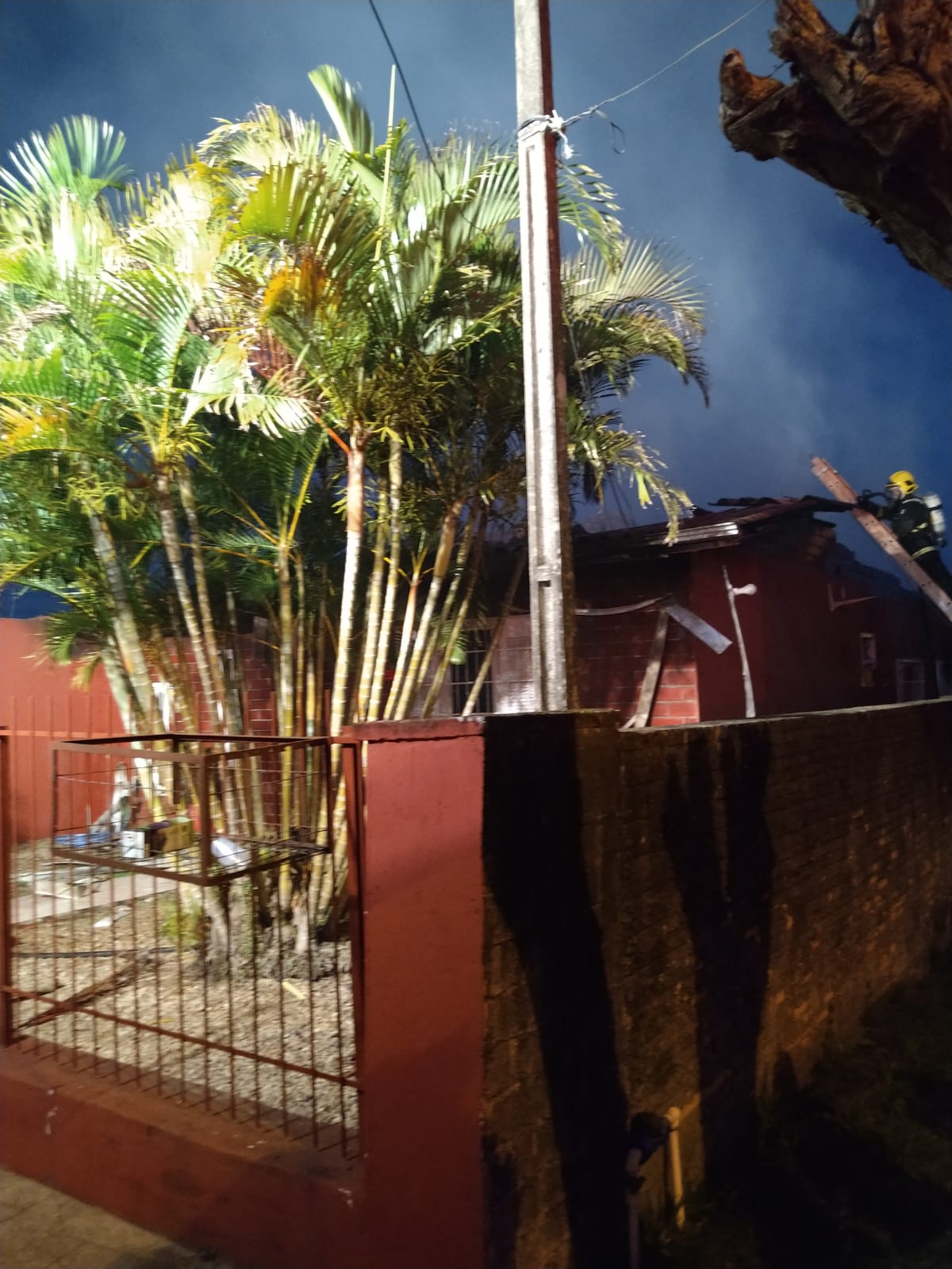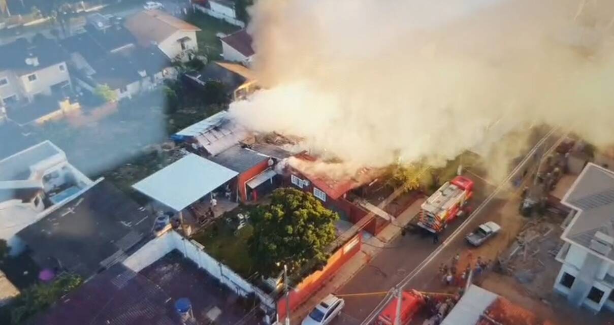 A casa, de aproximadamente 350m², já estava com o incêndio na fase de crescimento foi solicitado apoio para abastecimento e auxílio ao combate aos bombeiros de Araranguá e Turvo.