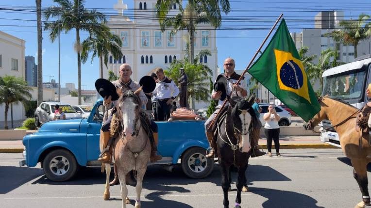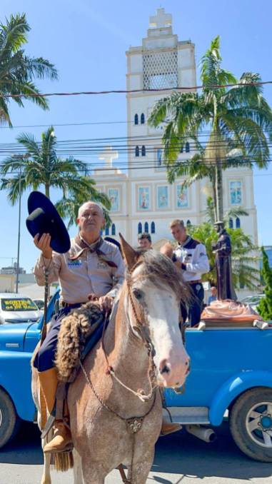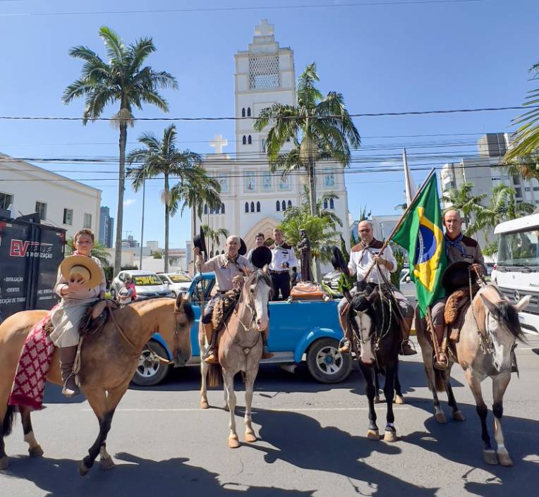 A emoção tomou conta dos participantes, especialmente durante um momento de celebração da fé, realizado em frente à Igreja Matriz Nossa Senhora Mãe dos Homens. Participantes e organizadores se uniram em uma emocionante prece, pedindo as bênçãos e proteção da Padroeira de Araranguá para iniciar as festividades.