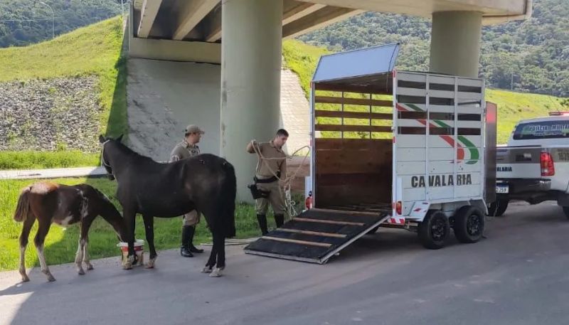 Na segunda-feira (13), um garanhão baio, em bom estado, foi levado para base da Cavalaria em São Pedro de Alcântara, e um um égua tordilha, também em bom estado, para a base de Barreiros.