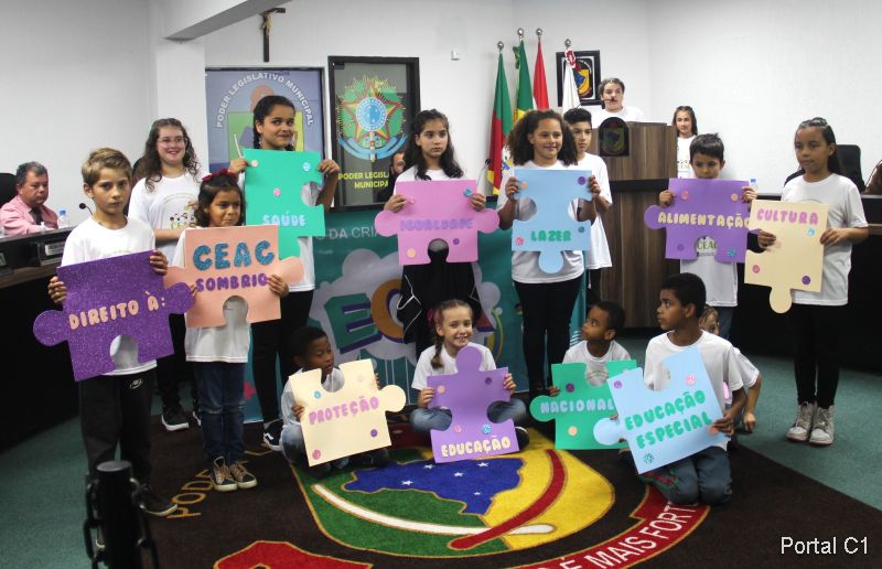Para dar início às comemorações, as crianças e adolescentes atendidos pelo CEAC fizeram uma exposição com seus trabalhos sobre o tema durante o dia e, à noite, compareceram à sessão da Câmara de Vereadores de Sombrio.