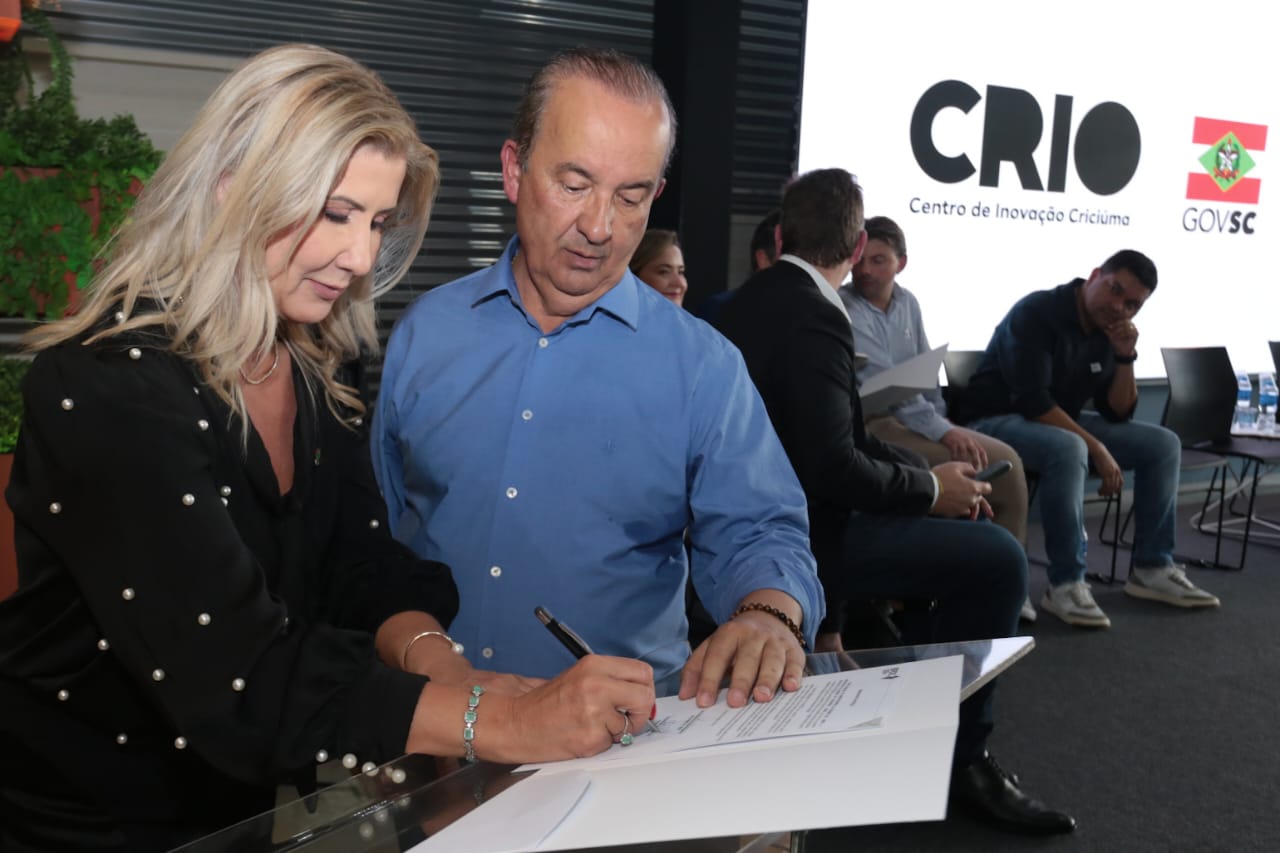 O dia 26 de abril de 2024 ficará gravado na memória da comunidade do Sul catarinense como a data em que a inovação e a tecnologia ganharam um novo e grande impulso. Após 11 anos de lutas e união de esforços, o Crio, Centro de Inovação Criciúma, foi entregue à região. Durante a cerimônia, o governador do Estado, Jorginho Mello, e a reitora da Unesc, Luciane Bisognin Ceretta assinaram o Termo de Governança, que passa o equipamento para a administração da Universidade. O ato ainda contou com a participação do prefeito de Criciúma, Clésio Salvaro, e do presidente da Acic, a Associação Empresarial de Criciúma, Valcir Zanette.