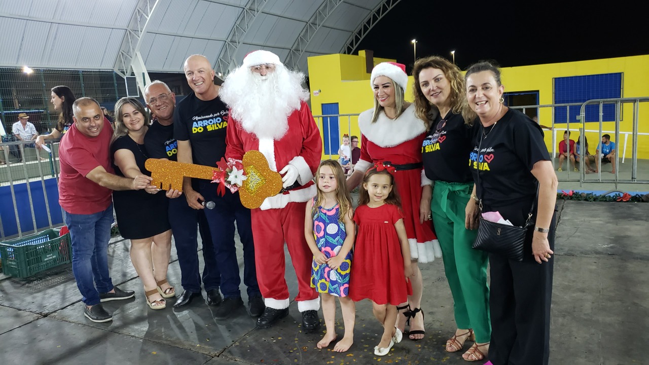 O sábado (10) foi especial em Balneário Arroio do Silva. Tudo foi preparado com muito carinho para acolher as famílias e aguardar a Chegada do Papai Noel. Logo no início da noite, os alunos da Apae, do CRAS e das escolas da rede municipal subiram ao palco e atraíram os olhares do público com as lindas apresentações. Com o encanto e o talento dos alunos, além do clima natalino no ar, o Bom Velhinho chegou com o seu carro super especial, deixando as famílias e crianças ainda mais felizes e entusiasmadas.