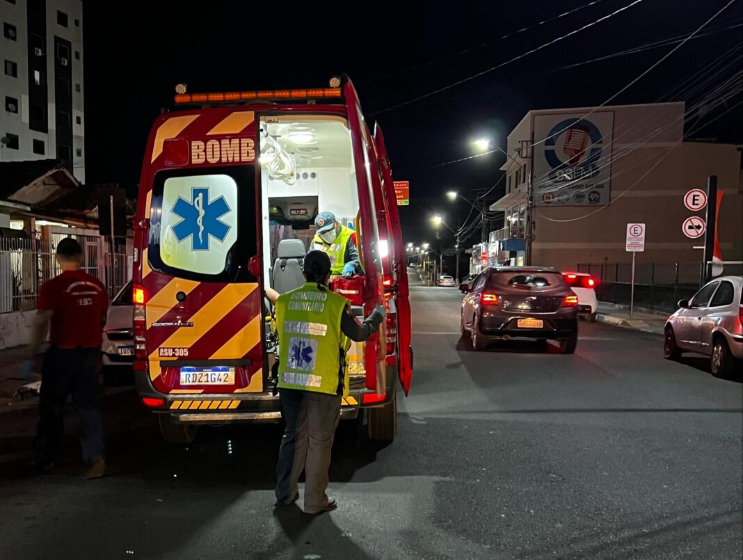 Um acidente de trânsito registrado às 22h20 deste sábado (29) mobilizou equipes de resgate no centro de Sombrio. A colisão envolveu uma motocicleta e um veículo de passeio e ocorreu na Rua João José Guimarães, em frente ao supermercado Giassi.