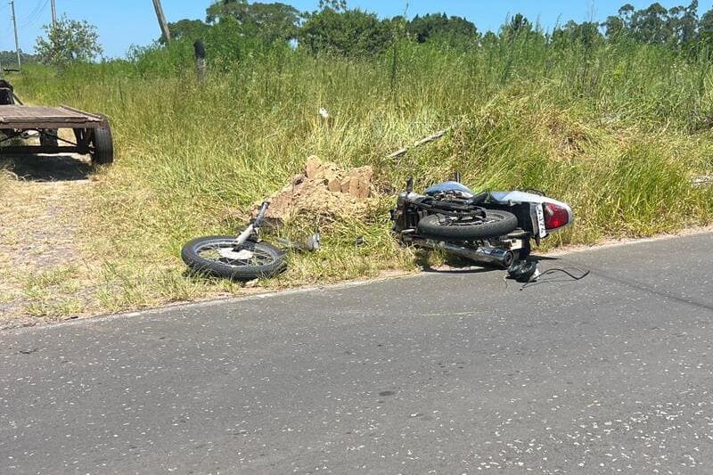 Um acidente de trânsito foi registrado por volta das 13h desta quarta-feira, na Estrada Geral da comunidade de Rio Novo, em Balneário Gaivota. A ocorrência envolveu uma motocicleta CG 150, de cor prata, e um triciclo.